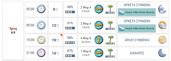 Ο καιρός στο Αγρίνιο σήμερα (Τρίτη, 04/04)