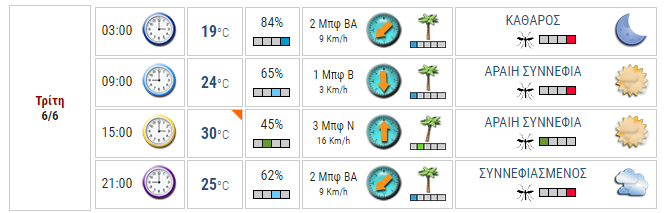 Ο καιρός στο Αγρίνιο σήμερα (Τρίτη, 06/06)