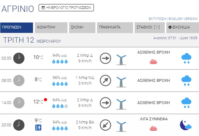 Ο καιρός στο Αγρίνιο σήμερα (Τρίτη, 12/02) – (Κείμενο-Φωτό-Ηχητικό)