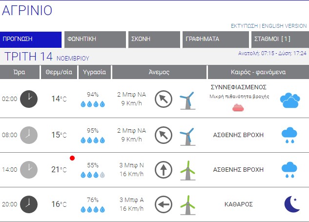Ο καιρός στο Αγρίνιο σήμερα (Τρίτη, 14/11) – (Κείμενο-Φωτό-Ηχητικό)