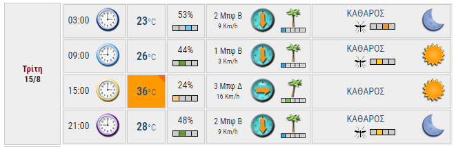 Ο καιρός στο Αγρίνιο σήμερα (Τρίτη, 15/08)
