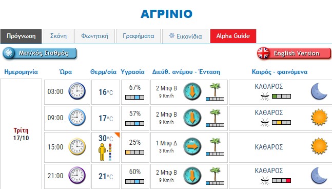 Ο καιρός στο Αγρίνιο σήμερα (Τρίτη, 17/10)