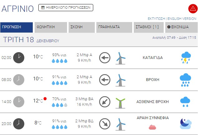 Ο καιρός στο Αγρίνιο σήμερα (Τρίτη, 18/12) – (Κείμενο-Φωτό-Ηχητικό)