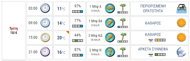 Ο καιρός στο Αγρίνιο σήμερα (Τρίτη, 18/04)