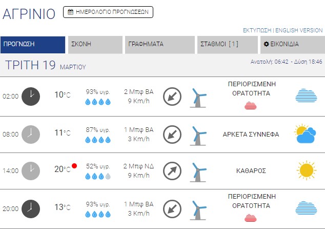 Ο καιρός στο Αγρίνιο σήμερα (Τρίτη, 19/03) – (Κείμενο-Φωτό)