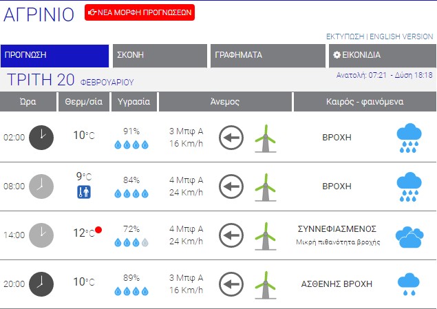 Ο καιρός στο Αγρίνιο σήμερα (Τρίτη, 20/02) – (Κείμενο-Φωτό-Ηχητικό)