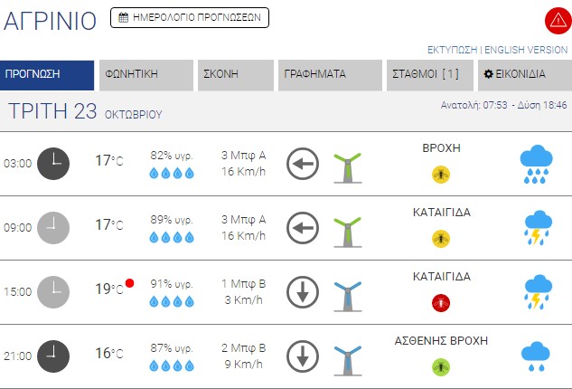 Ο καιρός στο Αγρίνιο σήμερα (Τρίτη, 23/10) – (Κείμενο-Φωτό-Ηχητικό)