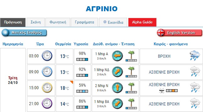 Ο καιρός στο Αγρίνιο σήμερα (Τρίτη, 24/10)
