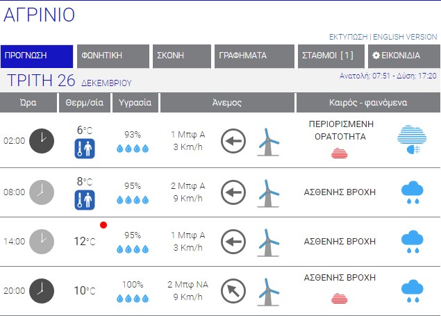 Ο καιρός στο Αγρίνιο σήμερα (Τρίτη, 26/12) – (Κείμενο-Φωτό-Ηχητικό)