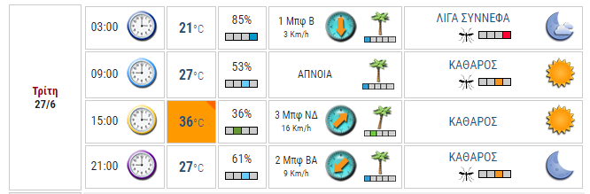 Ο καιρός στο Αγρίνιο σήμερα (Τρίτη, 27/06)
