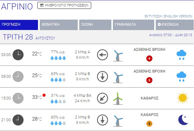 Ο καιρός στο Αγρίνιο σήμερα (Τρίτη, 28/08) – (Κείμενο-Φωτό-Ηχητικό)