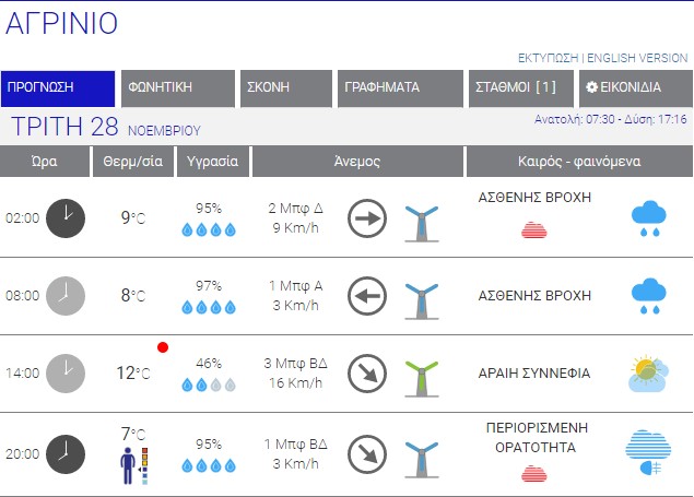 Ο καιρός στο Αγρίνιο σήμερα (Τρίτη, 28/11) – (Κείμενο-Φωτό-Ηχητικό)