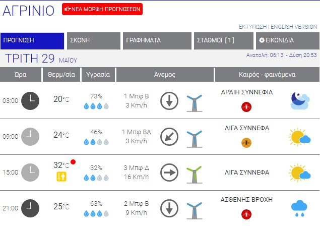 Ο καιρός στο Αγρίνιο σήμερα (Τρίτη, 29/05) – (Κείμενο-Φωτό-Ηχητικό)