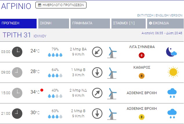 Ο καιρός στο Αγρίνιο σήμερα (Τρίτη, 31/07) – (Κείμενο-Φωτό-Ηχητικό)