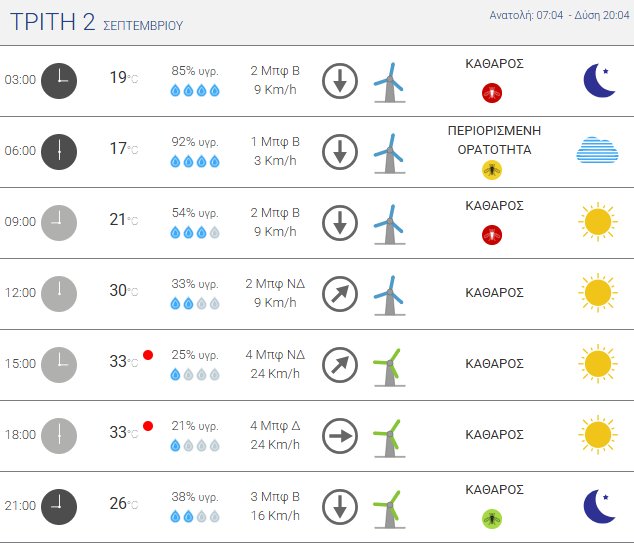 Την Τρίτη, 2 Σεπτεμβρίου 2025 αναμένεται αίθριος καιρός. Υψηλές για την εποχή θερμοκρασίες στα ηπειρωτικά. Άνεμοι έως 6 μποφόρ στο Νότιο Αιγαίο.