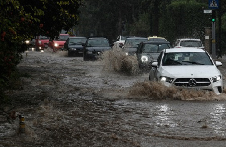 Δρόμοι έχουν γίνει ποτάμια και λίμνες σχηματίζονται με την κακοκαιρία να δημιουργεί προβλήματα στην κυκλοφορία των οχημάτων.