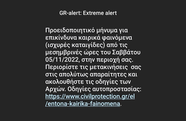 Τα μηνύματα, μεταξύ άλλων, καλούν τους πολίτες να περιορίσουν τις μετακινήσεις τους και να πραγματοποιήσουν τις απολύτως απαραίτητες.