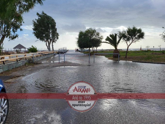 Στο μάτι του κυκλώνα βρέθηκε και πάλι σήμερα η Τουρλίδα καθώς οι ισχυροί άνεμοι έβγαλαν τη θάλασσα στη στεριά.