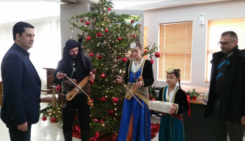 Τα κάλαντα των Χριστουγέννων έψαλλαν στον Δήμαρχο Αγρινίου Γιώργο Παπαναστασίου τμήμα της Δημοτικής Φιλαρμονικής και μέλη του Συλλόγου Ποντίων Ν. Αιτωλοακαρνανίας «Δημήτριος Ψαθάς» οι οποίοι προσέφεραν στον Δήμαρχο ένα λεύκωμα για την άλωση της Τραπεζούντας και το ημερολόγιο του 2019.