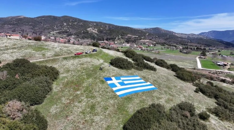 Καλάβρυτα: Άπλωσαν γαλανόλευκη 210 τετραγωνικών μέτρων (Photos)