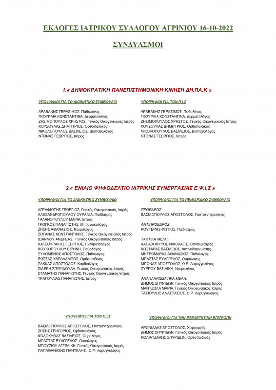 Στις κάλπες οι γιατροί του Αγρινίου την Κυριακή – Όλοι οι υποψήφιοι