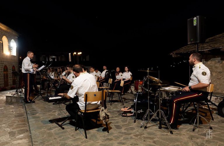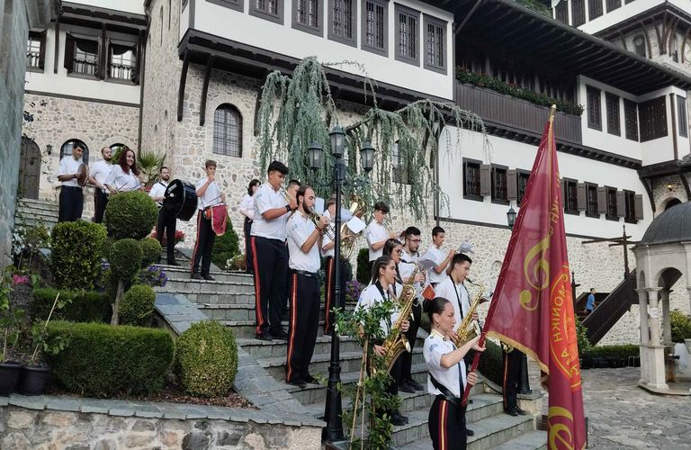 Τα νεαρά μέλη της Φιλαρμονικής είχαν την σπάνια ευκαιρία να φιλοξενηθούν σε ένα μοναστήρι που χρονολογείται από το 1020 μ.Χ. και να παίξουν γνωστές ελληνικές μελωδίες, με επιλογές από Θεοδωράκη και Ξαρχάκο, προκαλώντας το έντονο χειροκρότημα ιερέων και μοναχών.