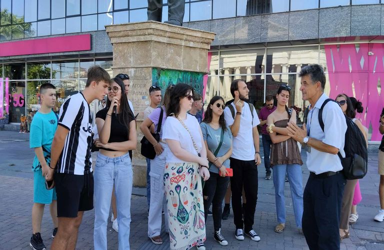 Κατά τη διάρκεια της τριήμερης παραμονής τους, τα μέλη της Φιλαρμονικής και του ΚΕΚΑΔΑ ξεναγήθηκαν στην πόλη των Σκοπίων, γνωστή για τα πολλά και υπερμεγέθη αγάλματα που την διακοσμούν, όπως και τις Γέφυρές της, ενώ επισκέφτηκαν τα ερείπια του σπιτιού της Μητέρας Τερέζας.