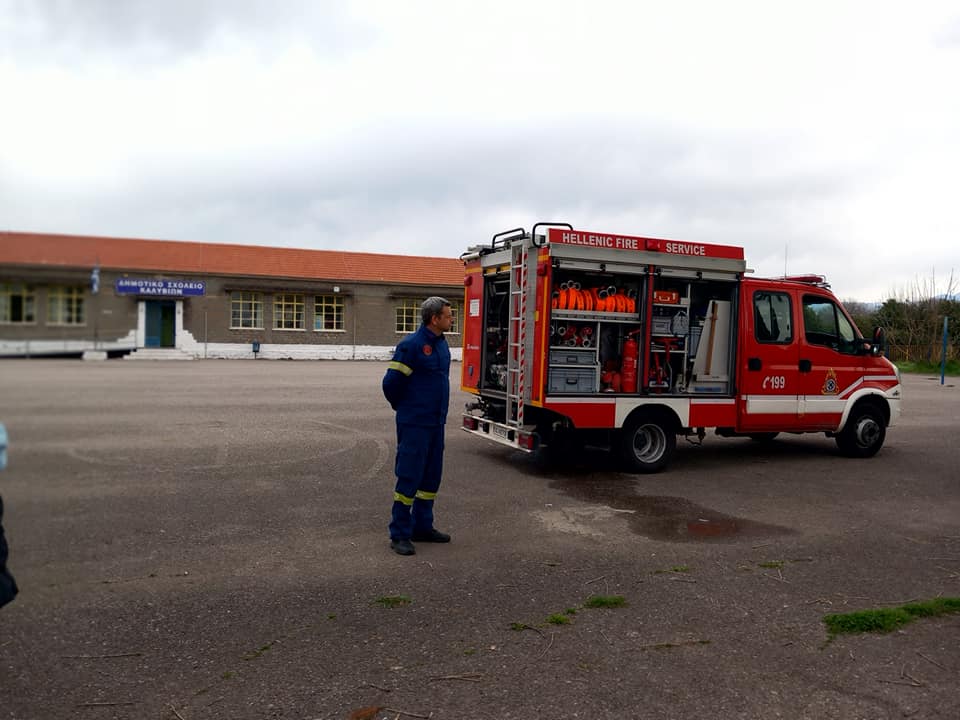 Ο Σύλλογος Γυναικών Καλυβίων «Δήμητρα» με πρωτοβουλία της Προέδρου κας. Μαίρης Ζαπαντιώτη οργάνωσε στο Δημοτικό Σχολείο της Κοινότητας, δράση ενημέρωσης των μαθητών για τη δράση της Πυροσβεστικής.