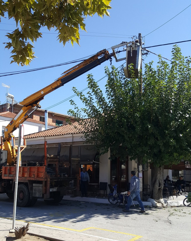 Πολυμελές τεχνικό συνεργείο, με εναερίτες και ειδικό γερανοφόρο όχημα που έχει εγκαταστήσει ο ιδιώτης εργολάβος ο οποίος έχει υπογράψει σύμβαση με τον ΔΕΔΔΗΕ, πραγματοποίησε τις εργασίες αλλαγής των παλιών καλωδίων (γυμνών αγωγών) με τη χρήση υλικών νεώτερης τεχνολογίας.