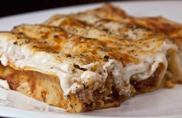 Τοποθετούμε τα κανελόνια, σε σειρά, μέσα σε ταψί 32×25 εκ., πάνω από τη σάλτσα.