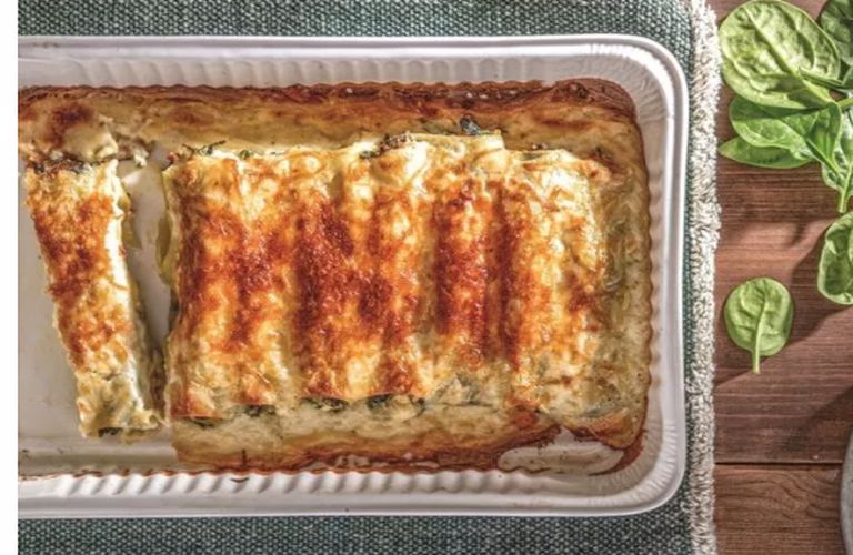 Προθερμαίνουμε τον φούρνο στους 180°C βαθμούς στον αέρα. Αφού κρυώσουν, ρίχνουμε μέσα τα τυριά και ανακατεύουμε. Γεμίζουμε τα κανελόνια αφού απλώσουμε λίγη από την μπεσαμέλ σε πυρίμαχο σκεύος και τα τοποθετούμε το ένα κοντά στο άλλο.