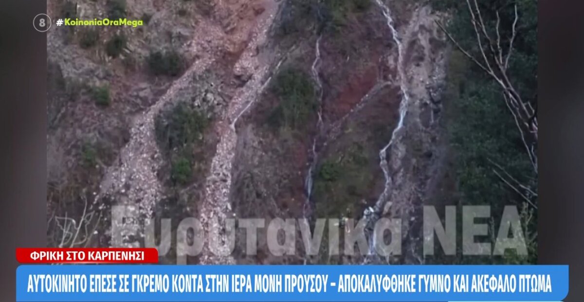 Καρπενήσι: Ι.Χ. έπεσε σε γκρεμό στην Ιερά Μονή Προυσού, έρευνα για εγκληματική ενέργεια ή ατύχημα