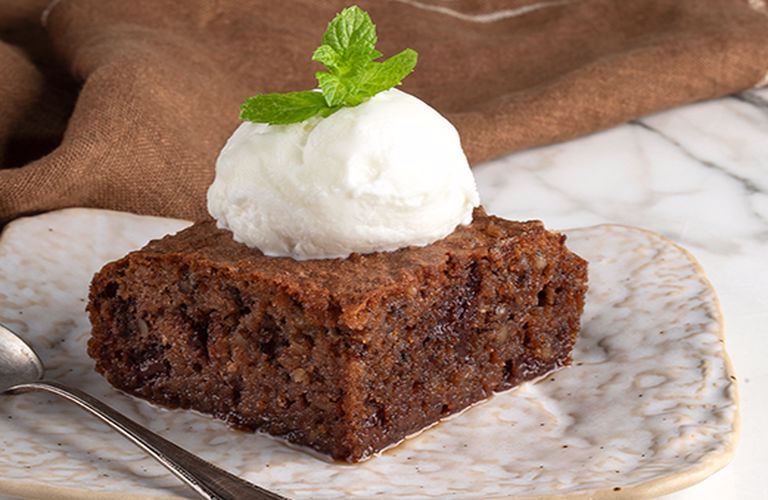Κόβουμε σε κομμάτια και σερβίρουμε με μια μπάλα παγωτό καϊμάκι και φύλλα δυόσμου.