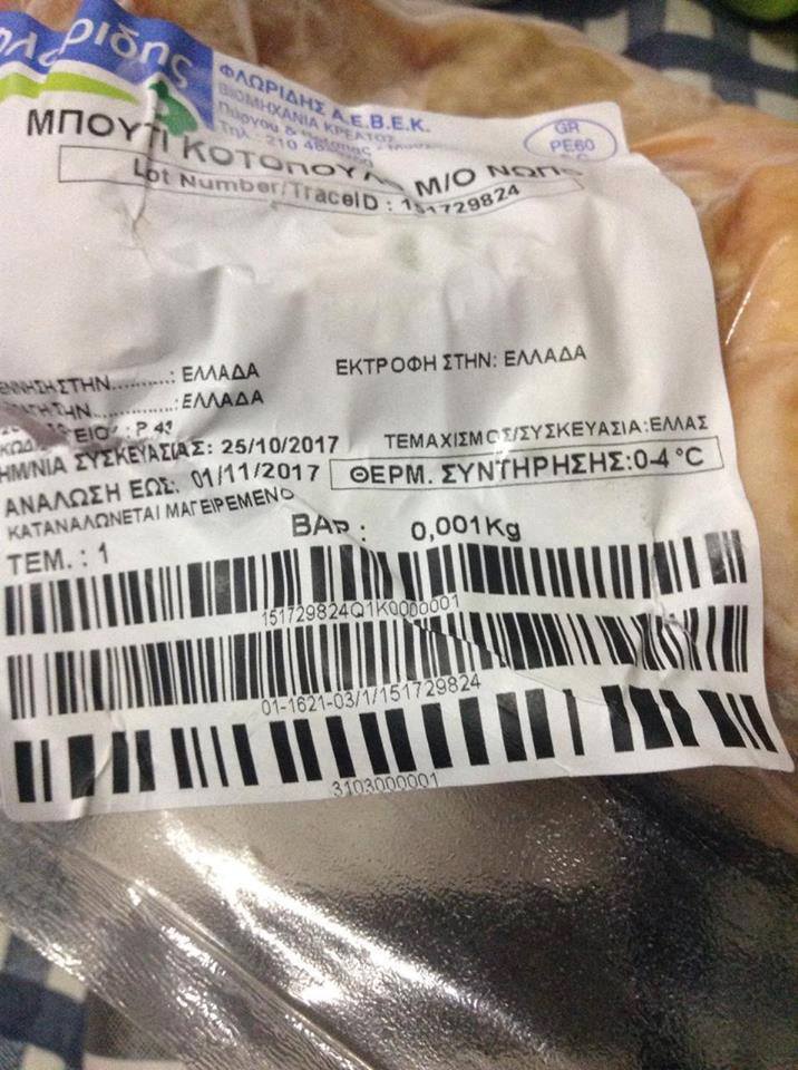 Για του λόγου το αληθές δείτε τις ακόλουθες φωτογραφίες, από τις οποίες ευδιάκριτα προκύπτει η ημερομηνία λήξεως του προϊόντος. Η διανομή έγινε στις 7 – 11 – 2017, δηλαδή 6 ημέρες μετά από την ημερομηνία λήξεως (1 – 11 – 2017).