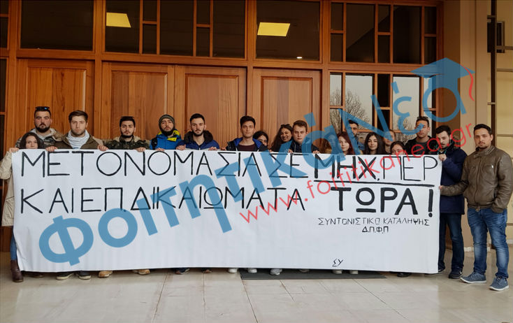 Οι φοιτητές δηλώνουν στα Φοιτητικά Νέα/Foititikanea.gr τους λόγους που τους οδήγησαν να προβούν σε κατάληψη της Πρυτανείας, συγκεκριμένα μας αναφέρουν: Ύστερα από απαιτήσεις τόσων χρόνων και διεκδικήσεων του φοιτητικού συλλόγου του τμήματος Δ.Π.Φ.Π. για την αναβάθμιση του πτυχίου μας, απαιτούμε την άμεση μετονομασία μας σε Μηχανικούς Περιβάλλοντος και την κατοχύρωση των αντίστοιχων επαγγελματικών δικαιωμάτων Συντονιστικό κατάληψης Τμήματος Δ.Π.Φ.Π. Το τμήμα Διαχείρισης Περιβάλλοντος και Φυσικών Πόρων διεκδικεί την μετονομασία του σε Μηχανικούς Περιβάλλοντος από το 2009.