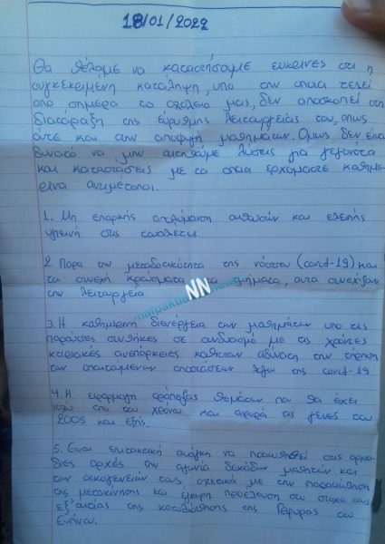 Αιτήματα και σοβαρές καταγγελίες από τους μαθητές του Γυμνασίου και Λυκείου Ευηνοχωρίου – Η πολιτεία αγνοεί τον κορωνοϊό;