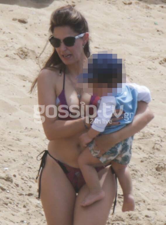 Η Κατερίνα Παπουτσάκη πήρε τους δύο γιούς της και με μια φιλική παρέα βρέθηκαν σε παραλία της Βουλιαγμένης.