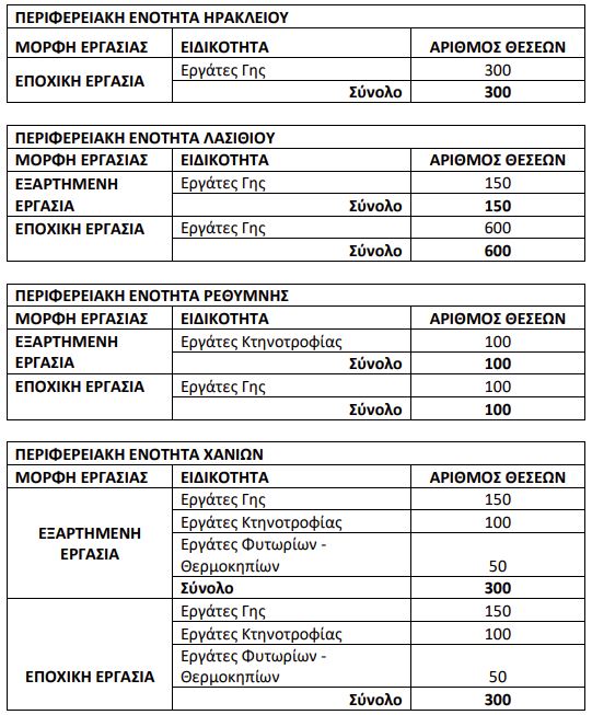 Σύμφωνα με απόφαση των Υπουργών Ανάπτυξης και Επενδύσεων, Εργασίας και Κοινωνικών Υποθέσεων, Εξωτερικών Μετανάστευσης και Ασύλου, Ναυτιλίας και Νησιωτικής Πολιτικής, Αγροτικής Ανάπτυξης και Τροφίμων, ανά Περιφέρεια και Περιφερειακή ενότητα, ο αριθμός καθορίζεται ως εξής: