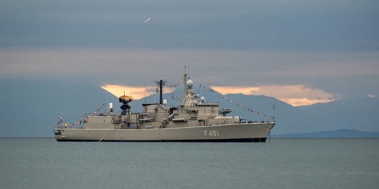Από μακρινή απόσταση επιβλέπουν δύο τουρκικές φρεγάτες.