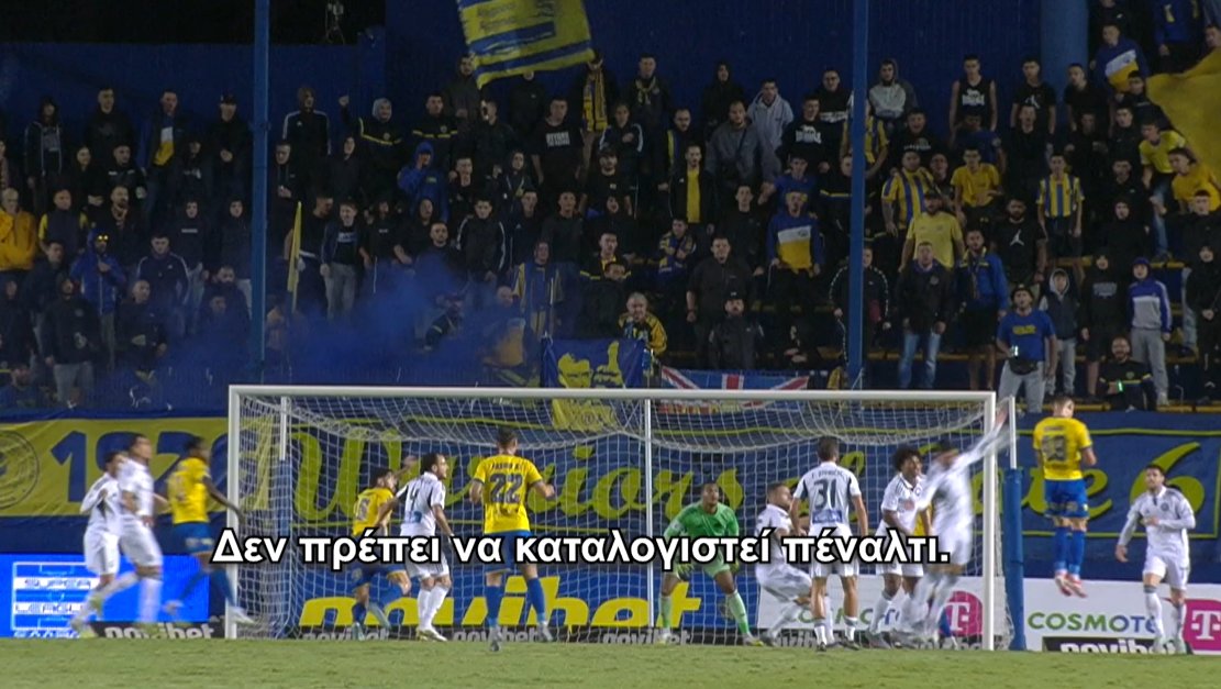 «Ο επιθετικός του Παναιτωλικού κάνει κεφαλιά και ο αμυντικός του Παναθηναϊκού την αποκρούει, χτυπώντας την μπάλα πρώτα με το κεφάλι και μετά με το χέρι που είναι μακριά από το σώμα του.