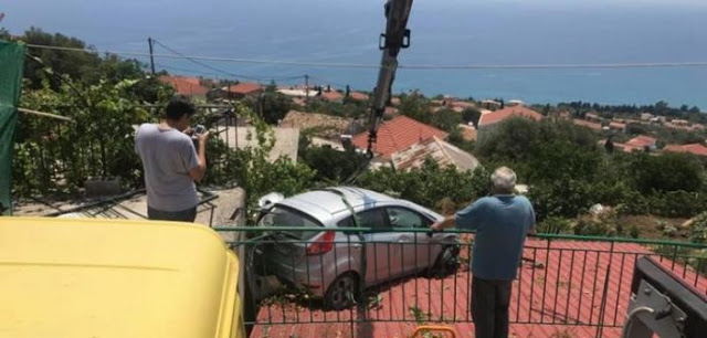 Κεφαλονιά: Αυτοκίνητο ξέφυγε από την πορεία του και έπεσε σε στέγη γκαράζ! (Φωτογραφίες)