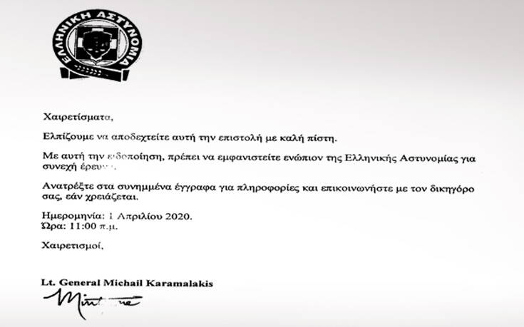 Το κείμενο – απάτη που φτάνει στο e-mail ως δήθεν επιστολή της ΕΛ.ΑΣ.