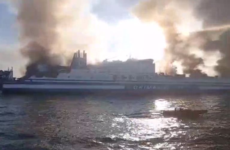 Σύμφωνα με την πλοιοκτήτρια εταιρία Grimaldi, η πυρκαγιά στο πλοίο της, ξέσπασε στο γκαράζ νούμερο τρία. Η εταιρεία τονίζει ότι το προσωπικό κινητοποιήθηκε άμεσα για την κατάσβεση της φωτιάς και στη συνέχεια, σύμφωνα με τις προβλεπόμενες διαδικασίες, ο κυβερνήτης πληροφόρησε τις αρμόδιες ελληνικές και ιταλικές Αρχές και αποφάσισε την εγκατάλειψη του πλοίου.