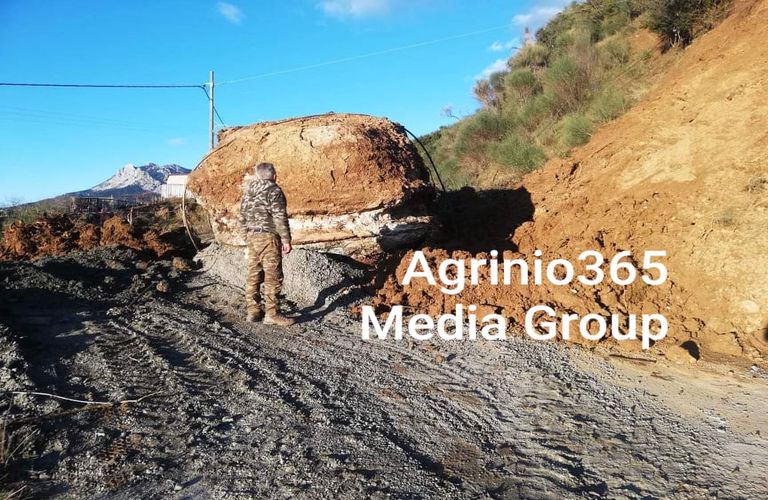 Κλειστός ο δρόμος στην Κερασέα Αγρινίου εξαιτίας κατάπτωσης μεγάλης πέτρας (Photos)