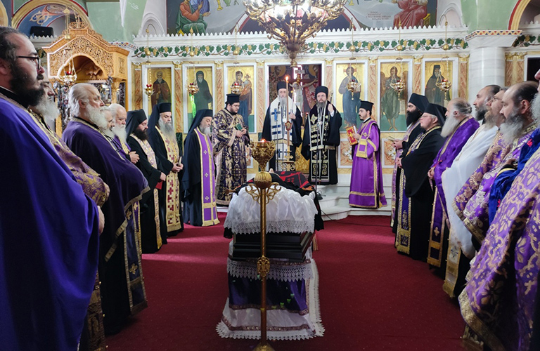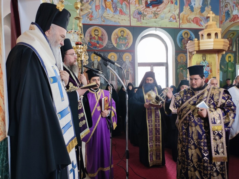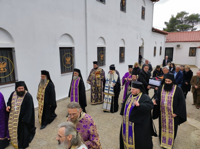 Ευχήθηκε η πολύτιμη παρακαταθήκη και το σπουδαίο έργο που αφήνει στην Ιερά Μονή να βρει συνεχιστές και υποσχέθηκε να εργαστεί ο ίδιος, για να πραγματοποιηθεί το όραμά της για την ανέγερση του νέου Ιερού Ναού του Αγίου Κοσμά του Αιτωλού, ώστε η ψυχή της να χαίρεται, να ευφραίνεται και να πρεσβεύει για την Αδελφότητά της και για ολόκληρη την τοπική μας Εκκλησία.