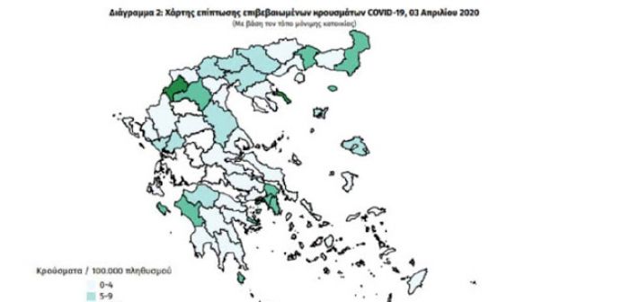 Τα στοιχεία που παρουσιάζονται αφορούν περιστατικά από την επιδημιολογική επιτήρηση της νόσου με βάση τα δεδομένα που έχουν δηλωθεί στον ΕΟΔΥ και καταγραφεί μέχρι τις 03 Απριλίου 2020 (ώρα 15:00).