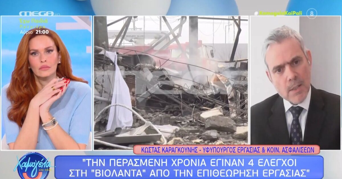 Ο Υφυπουργός Εργασίας, Κώστας Καραγκούνης, μίλησε στο Mega Channel και το «Χαμογέλα και Πάλι!» για την έκρηξη στη «Βιολάντα» που προκάλεσε πέντε θανάτους.