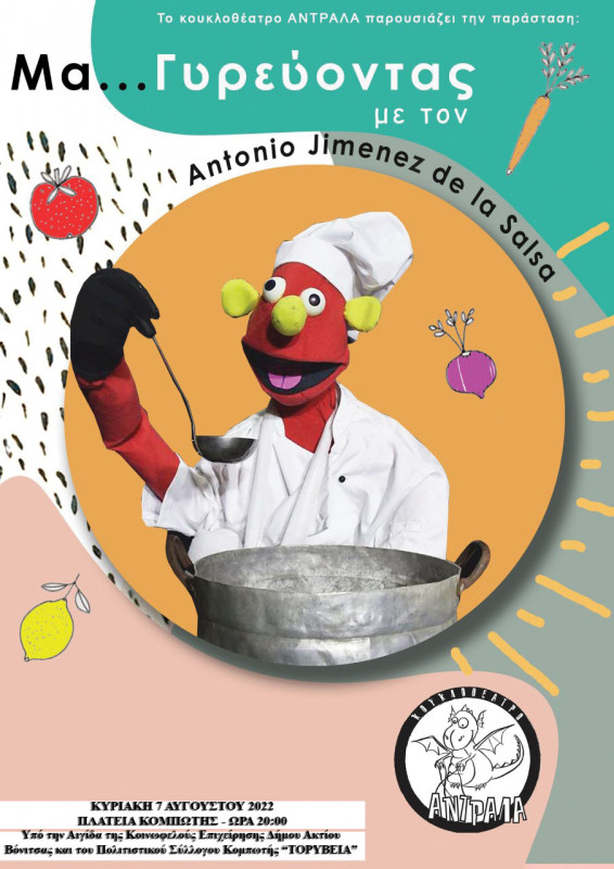 Η Κοινωφελής Επιχείρηση του Δήμου Ακτίου Βόνιτσας στα πλαίσια των Καλοκαιρινών Πολιτιστικών Εκδηλώσεων «Ταξίδια Πολιτισμού – Καλοκαιρινά Ραντεβού στην πόλη μας» και σε συνεργασία με το Κουκλοθέατρο ΑΝΤΡΑΛΑ, διοργανώνει Παραστάσεις Κουκλοθέατρου με τίτλο «Μα… Γυρεύοντας με τον Antonio Jimenez de la Salsa».