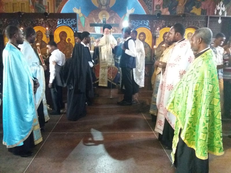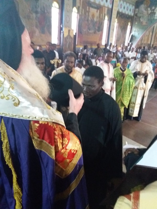 Ο Μητροπολίτης Κανάγκας Θεοδόσιος μετέφερε στον νέο μοναχό τις ευχές του Πατριάρχου και τις ευλογίες του.