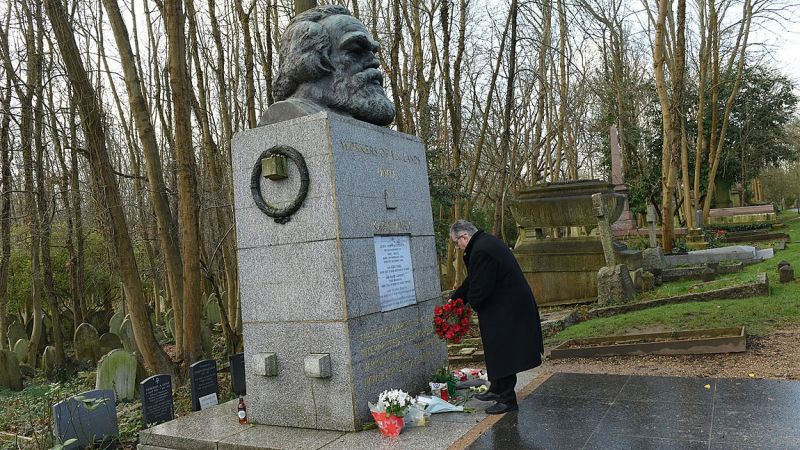 κατέθεσε στεφάνι και δήλωσε ότι «Η διδαχή του Καρλ Μαρξ ότι οι φιλόσοφοι μέχρι τότε απλά εξηγούσαν τον κόσμο, το ζήτημα είναι να τον
